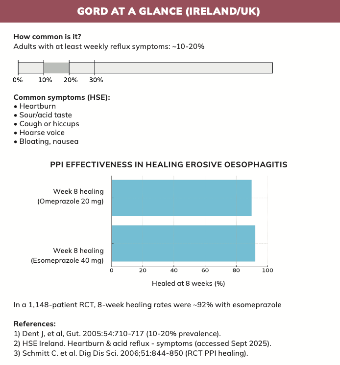 In Ireland, pharmacists are often the first point of contact for patients with GORD. Their role combines OTC treatment advice, patient counselling, and referral, ensuring safe, effective, and cost-efficient care.