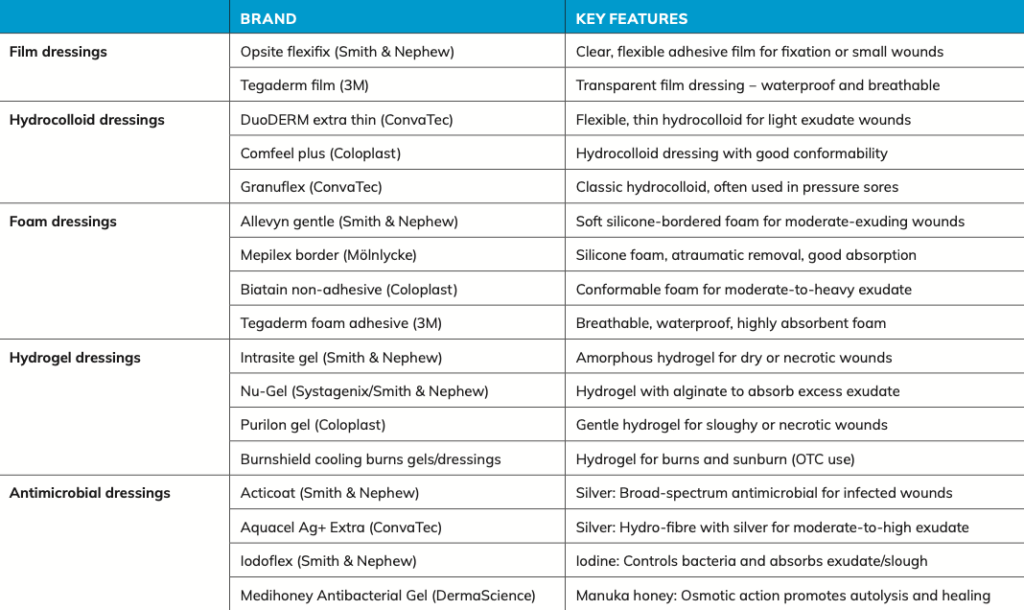 A well-chosen dressing protects the wound, maintains a moist but not wet environment, absorbs excess exudate, and minimises trauma when removed. The aim is to create the ideal conditions for epithelial regeneration while preventing infection and discomfort. The pharmacist’s decision should be guided by: