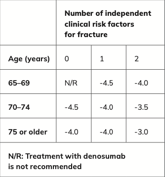 - Have a combination of T-score, age, and number of independent clinical risk factors for fracture as indicated in Table 3.