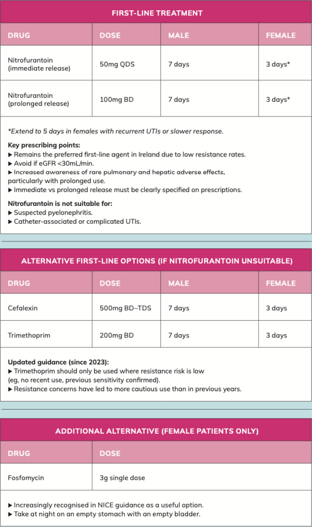 • Health Service Executive (HSE) (2026) Uncomplicated UTI in adult non-pregnant females (V2.2). Dublin: HSE. Available at: https:// healthservice.hse.ie.