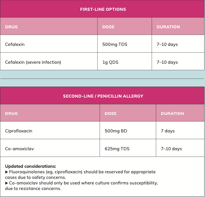 • Health Service Executive (HSE) (2025) Antimicrobial Prescribing Guidelines for Primary Care. Dublin: HSE. Available at: https:// healthservice.hse.ie.