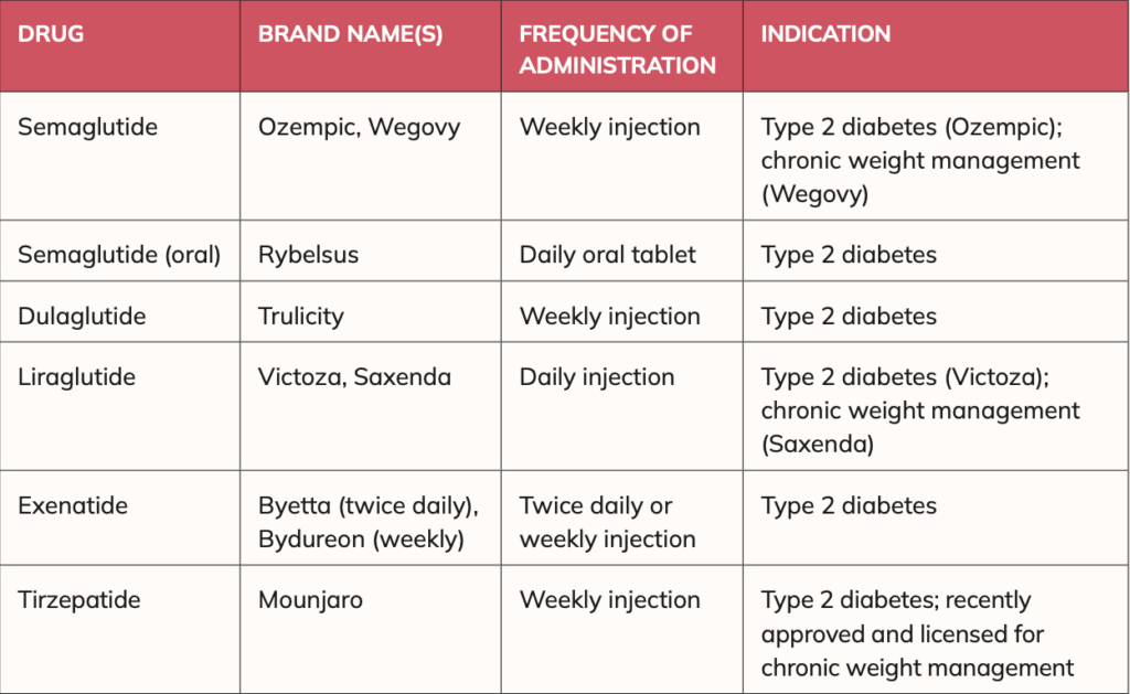 - Licensed for weight management only: Saxenda (liraglutide), Wegovy (semaglutide).